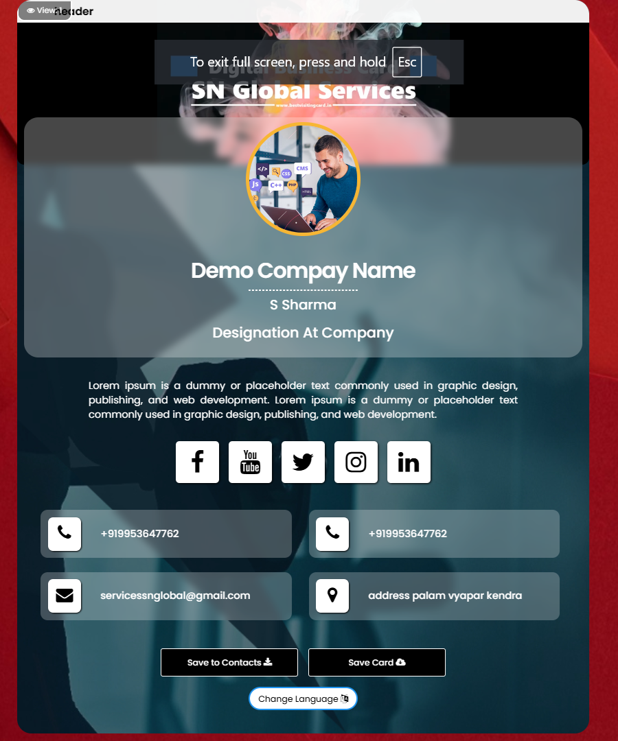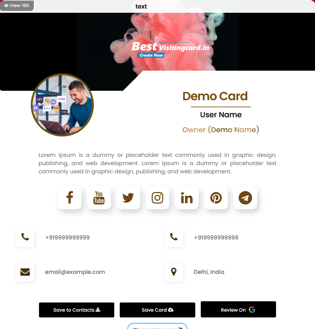 Now creating business card is very easy and free. Go digital share unlimited times.